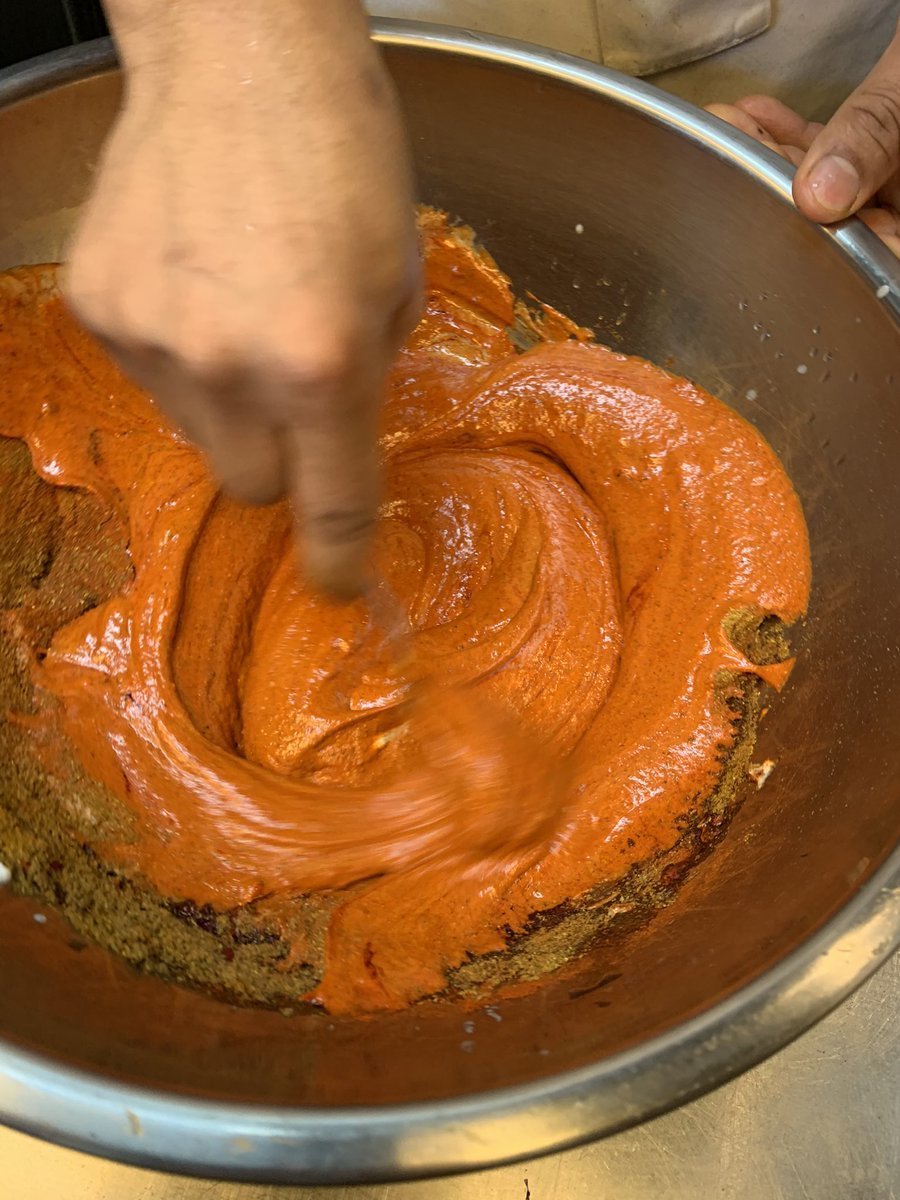 仕込中のチキンティッカ、粗挽き挽き肉の